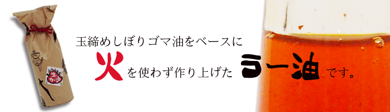通常のラー油は加熱焙煎して作るのに比べ 原材料に手間をかけ加熱せず長時間かけて唐辛子成分をごま油に とかしこんでいるのがこの生ラー油の特徴です。